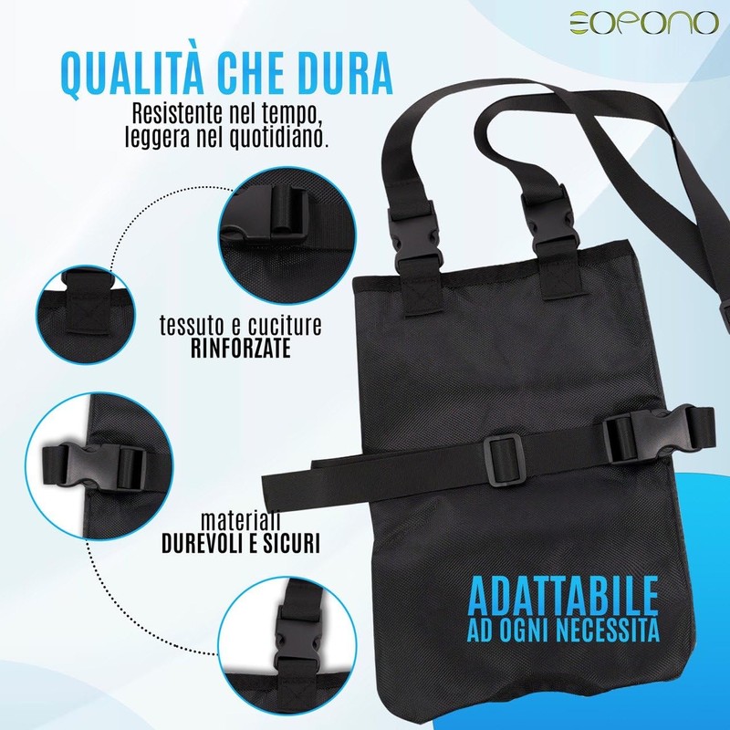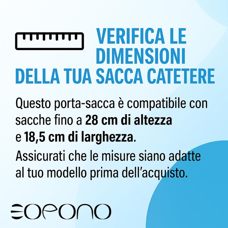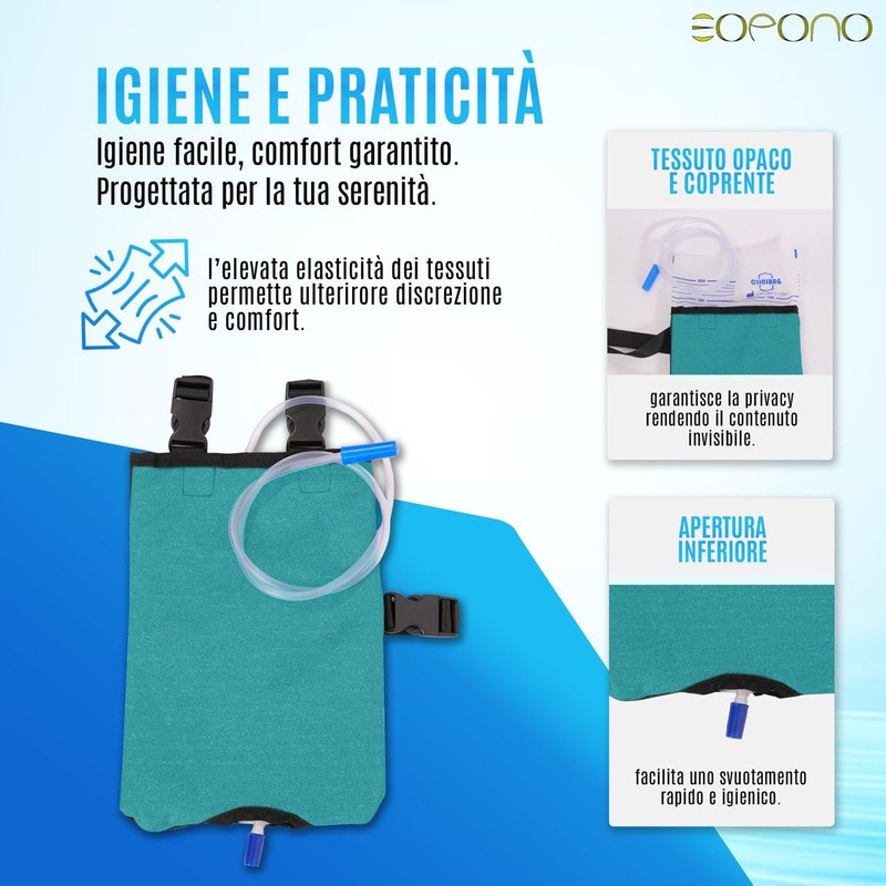 - Italian brand - Eopono uses the best suppliers for the production of its bladder catheter shoulder strap. For any additional information, our team is always available to provide support
