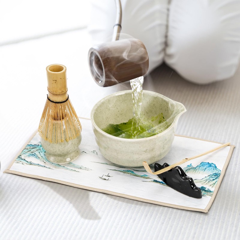 - 6 Pcs Matcha Kit Set: You will receive a complete matcha kit set of 6, which includes matcha bowl, bamboo tea whisk and spoon, ceramic scoop stand and whisk holder, and cotton tea cloth, perfect for matcha starters and lovers.