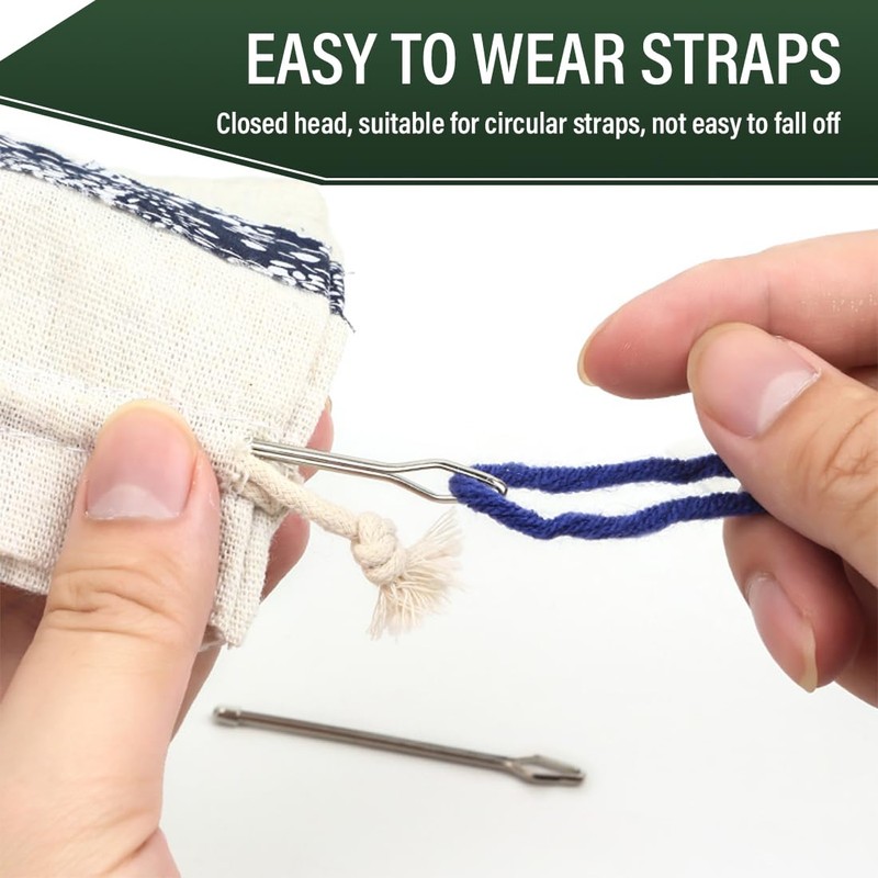 - USER-FRIENDLY DESIGN: With this drawstring tool, you can thread elastic bands or bands through existing holes and tubes in fabrics or garments. With this end you can grip, secure and pass through the fabric edge