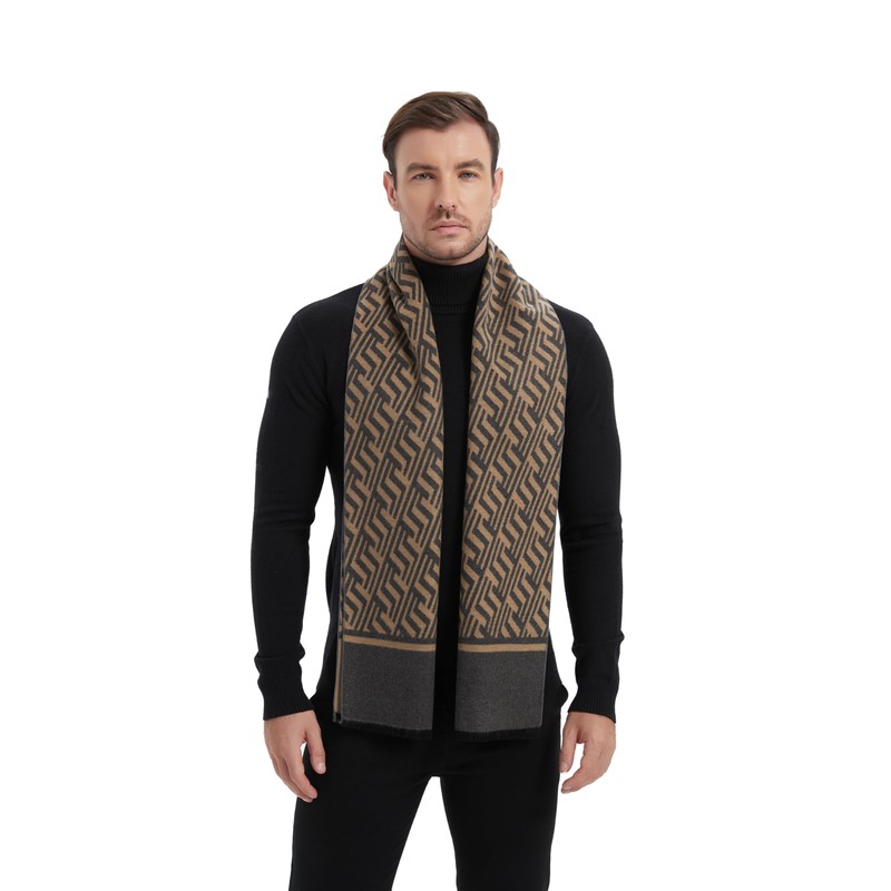 EP Mode Men’s Wool Blend Scarf for Winter, Brushed for Warm & Soft Texture, with Tassel Detail (Geo Camel)