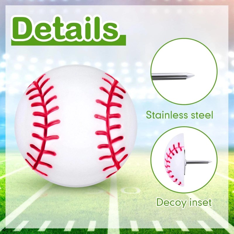 Reliable and Long Lasting: made of plastic and metal materials, these baseball pushpins are sturdy and reliable, tear and wear resistant, can serve you for a long time, you can buy and use them with confidence