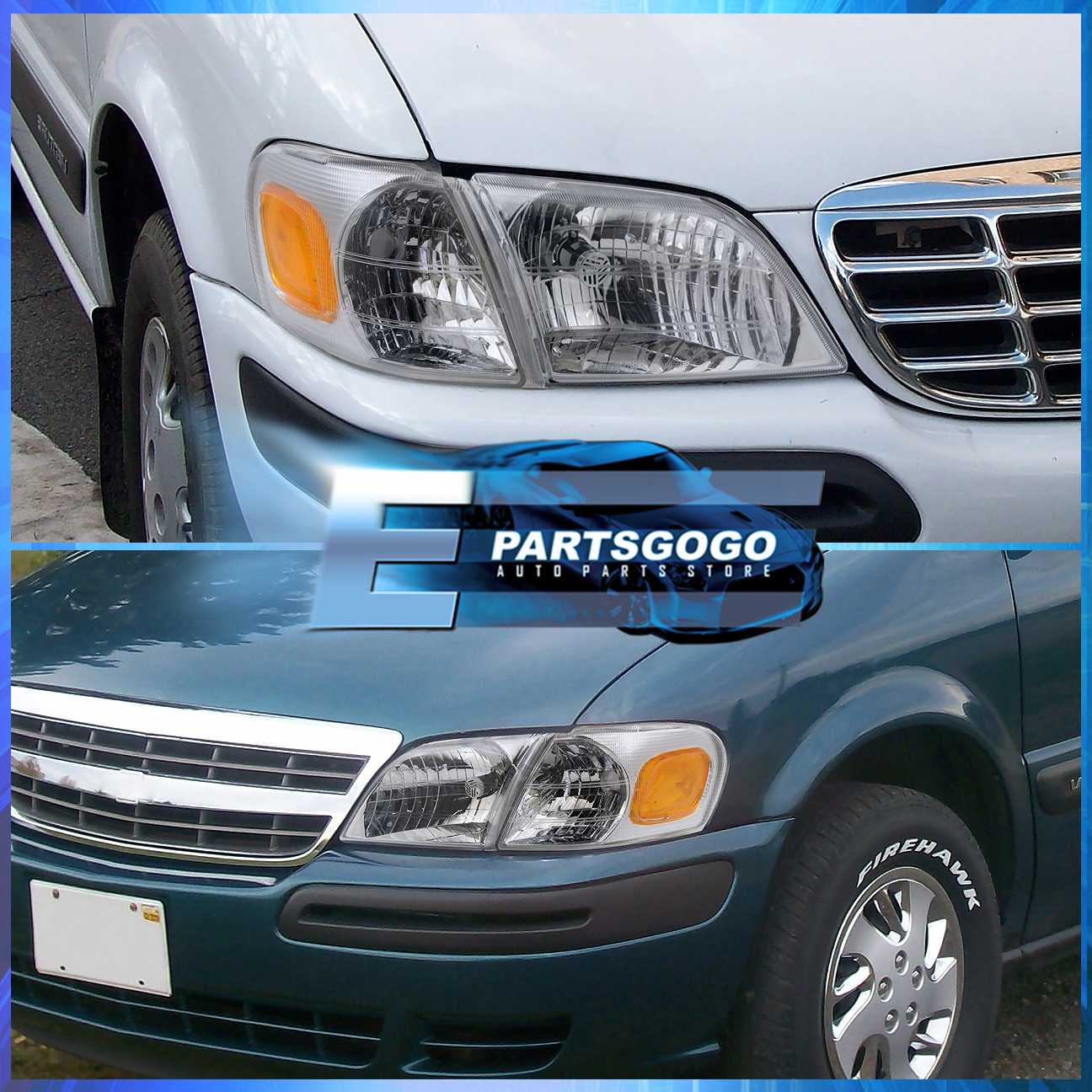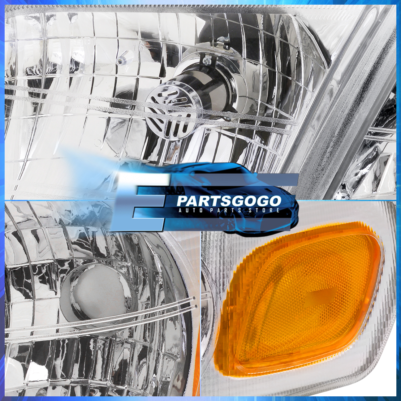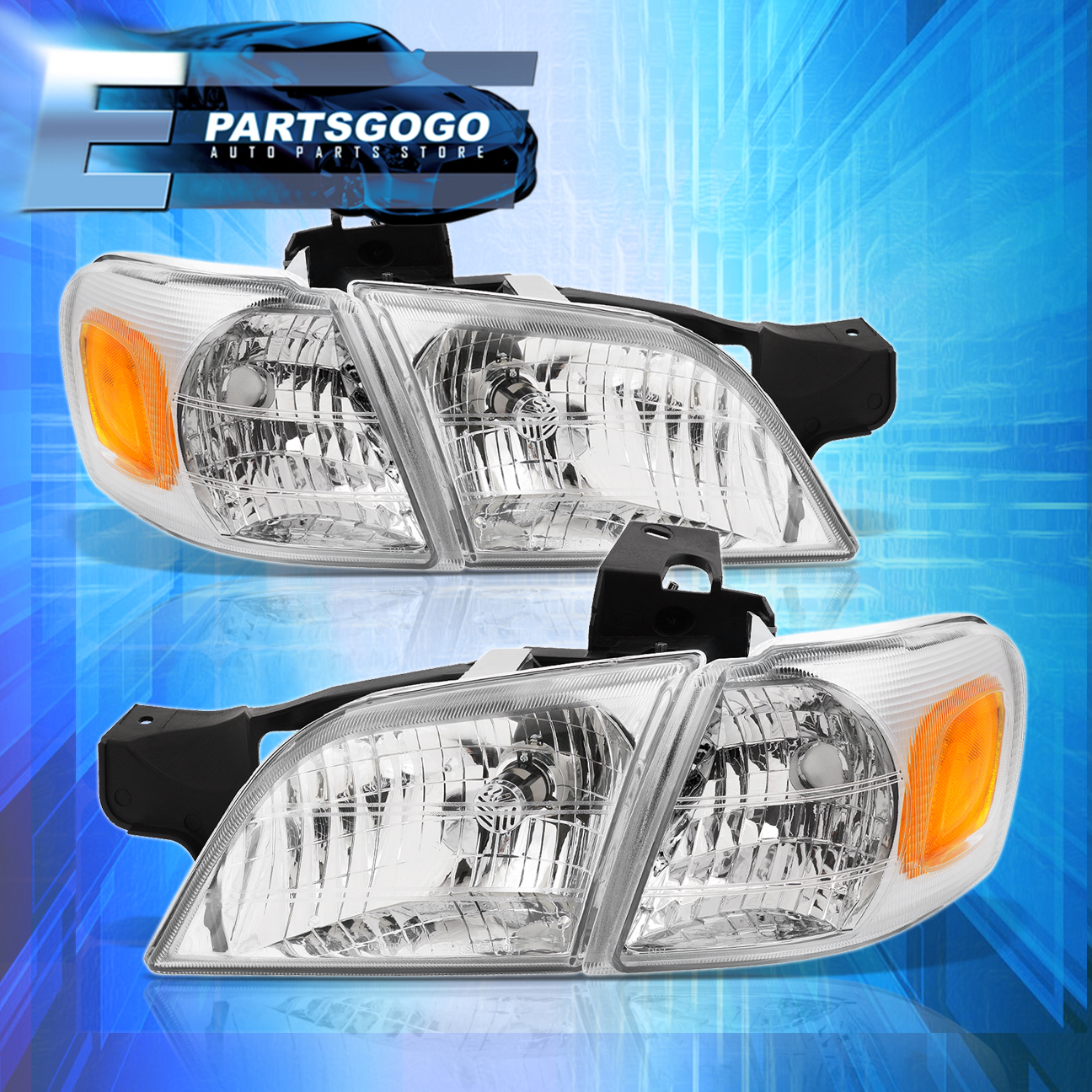Epartsgogo For 97-05 Chevy Venture Chrome Amber Reflector Headlights + Corner Signal Lamps