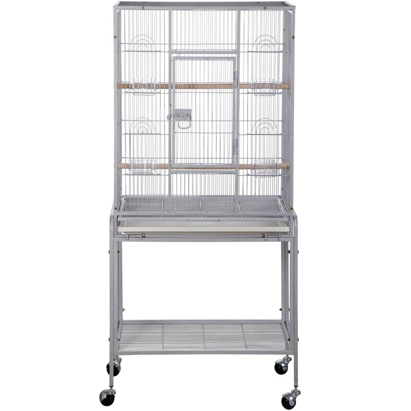 - Considerate Design: This parrot cage comes with a stand sits on four 360 degrees swivel rolling casters allows convenient moving. Easily move your pets to enjoy the outdoor weather. There are 4 feeding windows on the front, sliding for convenient feed replenishment