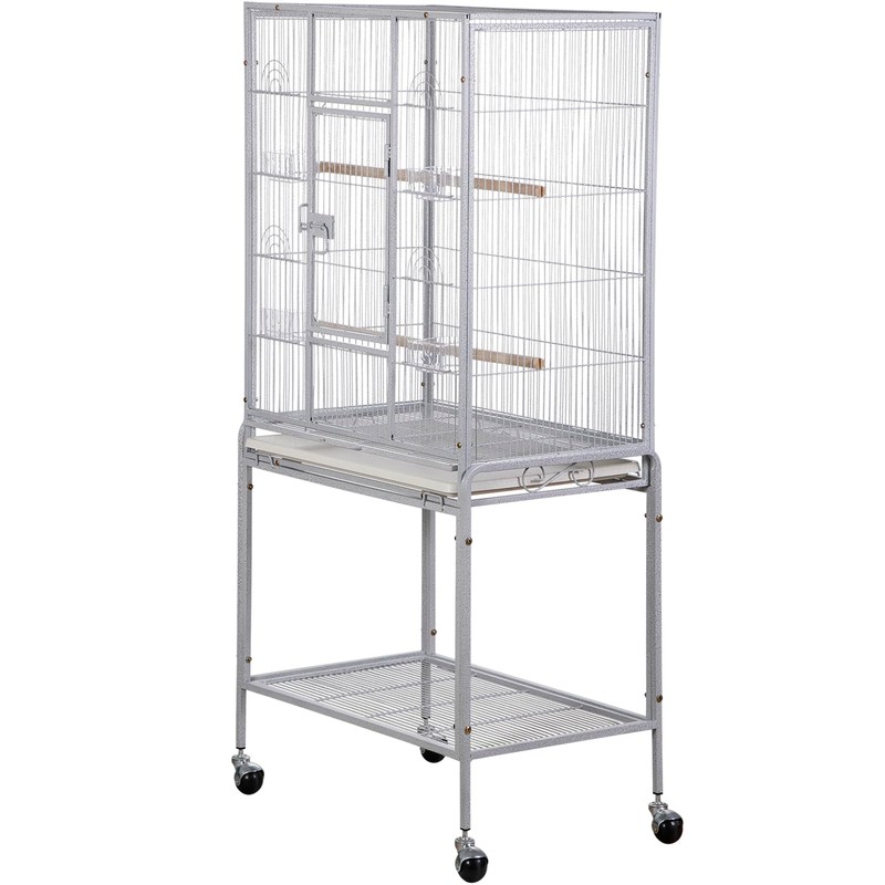 Epetlover 53 Inch Height Wrought Iron Standing Parrot Large Flight Bird Cage with Rolling Stand Birdcages for Parakeet Cockatiel Conure Lovebird Finch, White