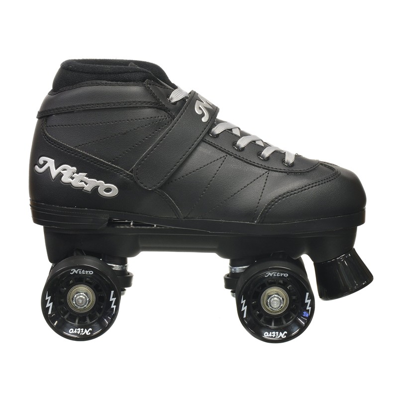 - Epic Super nitro boots - Black with Silver trim - comfortable padded collar - Classic speed skate design with speed strap - man-made uppers