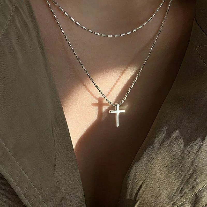 EPIC VAULT-Charm 925 Silver Corss Gypsophila Sparkling Necklace Clavicle