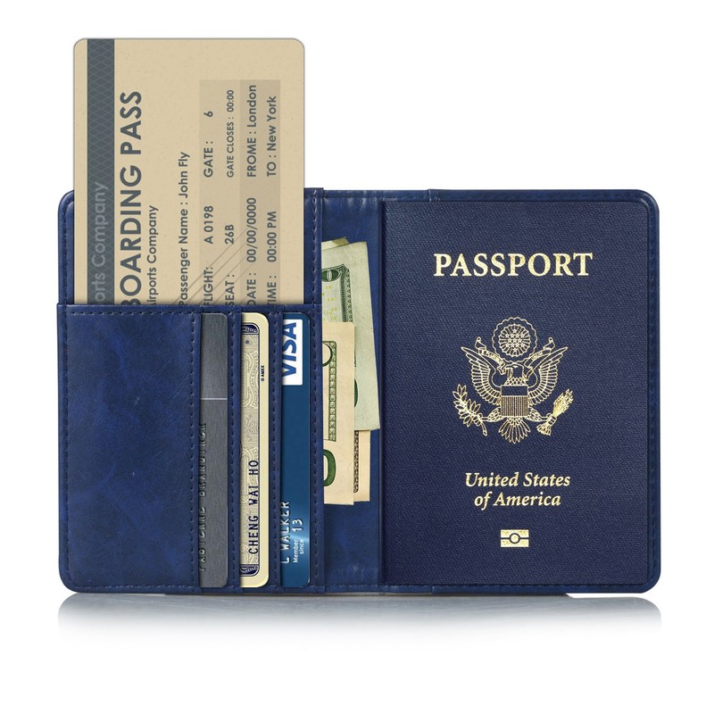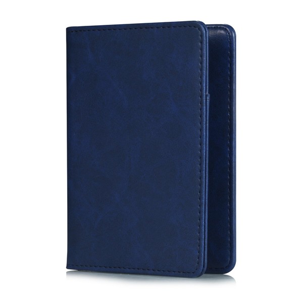 EpicGadget RFID Blocking Premium Leather Passport Holder Travel Wallet Cover Case (Navy Blue)