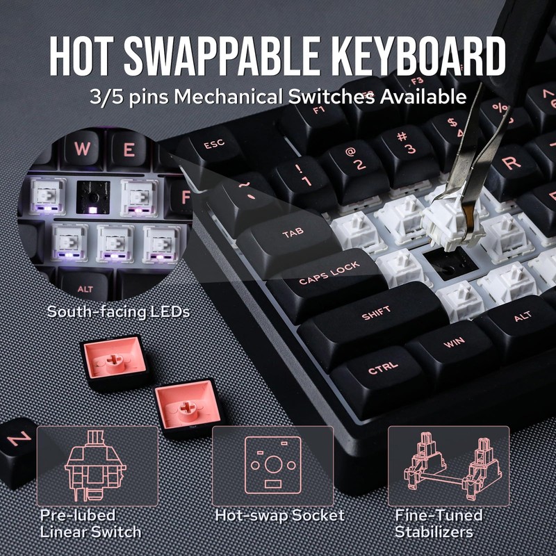 • Pre-Lubed Hot-Swappable Linear Switches: Lubed in factory, the Galaxy100 keyboard houses linear marble switches that sounds as gentle and enjoyable as mellow marbles. With the cushioned Gasket-Structure, the typing sound is dampened to a soft thud perfect for various use scenarios. The Galaxy100 Keyboard also comes with hot-swappable PCB and a 2-in-1 switch puller, for keyboard enthusiasts to test out different switches seamlessly and effortlessly. No more soldering iron, as a switch swap can be as simple as a pull-and-push