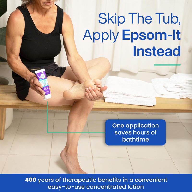 - Epsom salts, anywhere, anytime - Skip the foot soak and enjoy the benefits of Epsom salt in a foot lotion! Epsom-It magnesium lotion is 30x more potent than a traditional Epsom salt bath soak with a 20% concentration of USP grade magnesium sulfate.