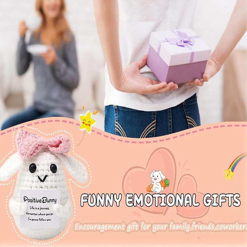 - Emotional Support The wool Easter bunny knitting doll is a charming being that brings comfort and positivity. With its Positive Affirmation card, this Positive Doll Pocket Hug offers heartfelt encouragement and is perfect for cheering someone up on difficult days.