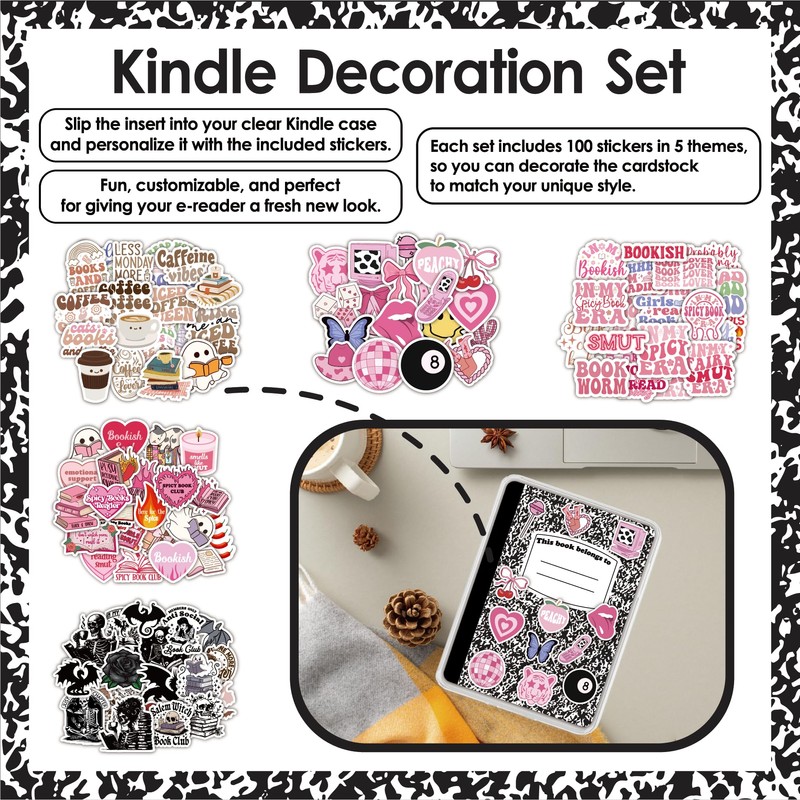 - 100 Decorative Stickers Included - Comes with 100 stickers in 5 fun themes: dark romance, bookish, coffee, preppy, and pink (approx. 2.1” each). Mix and match to personalize your Kindle with endless combinations.