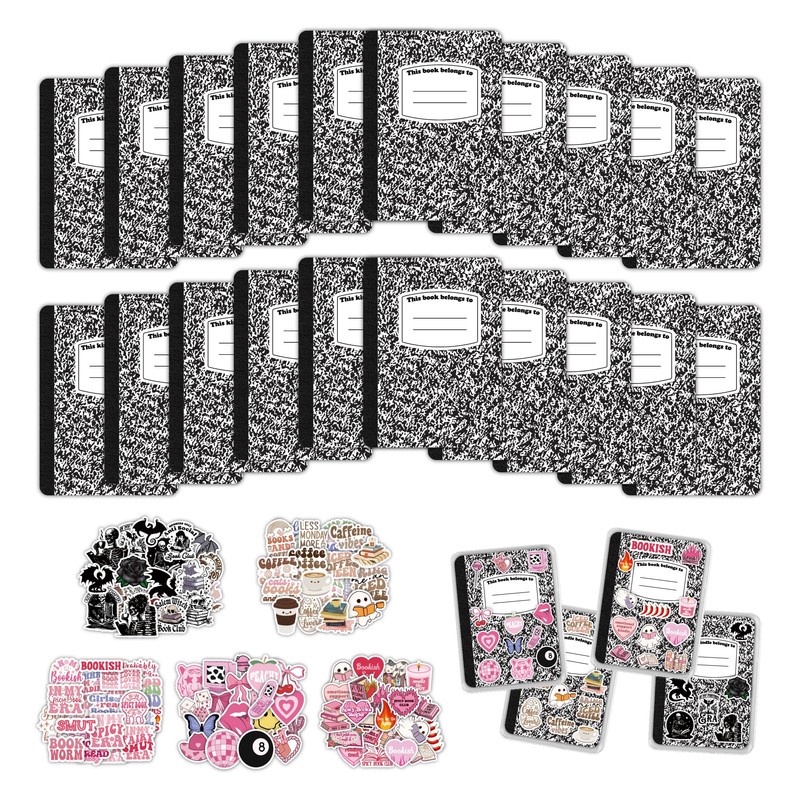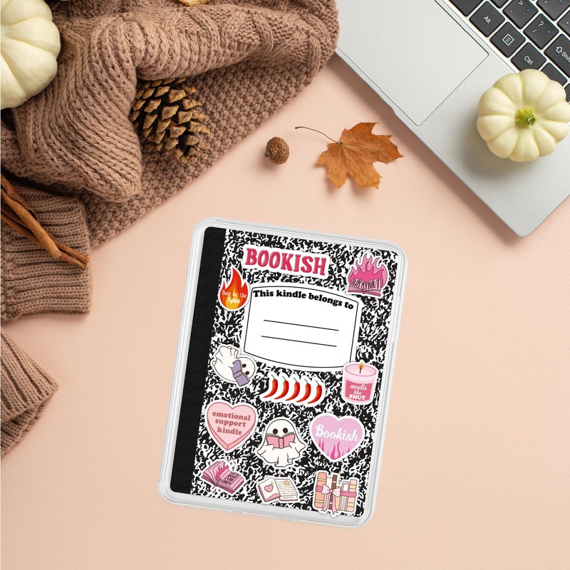Epzariooy 20PCS Composition Notebook Kindle Cardstock Inserts for 6.8” Clear Case (11th Gen) with 100 Stickers – 5 Styles: Romance, Spicy, Pink, Coffee & Preppy, Black and White DIY Bookish Gift
