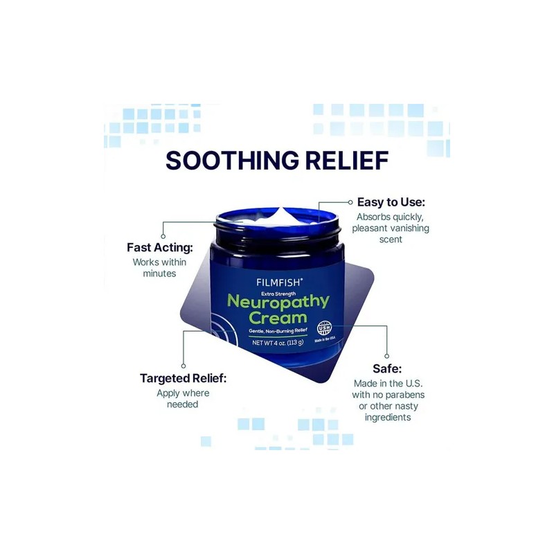 Descripción Limpia: FÓRMULA EXTRA FUERTE: La crema for neuropatía especialmente formulada proporciona un alivio suave y sin escozor for pies, piernas, manos y articulaciones.