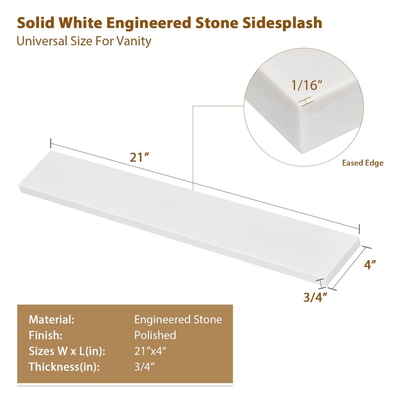 EQLOO 21 Inch Solid White Sidesplash, 1-Piece Bathroom Vanity Sidesplash, Engineered Stone Vanity Sink Countertop Sidesplash
