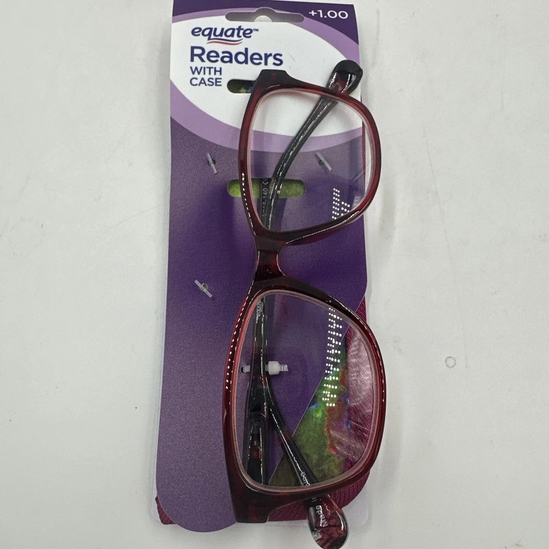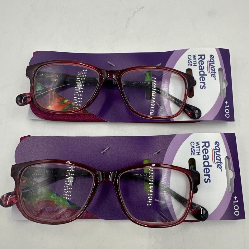 EQUATE 2 Equate Flora Red Readers w Case +1.00 Reading Glasses 52 16-140, O53741