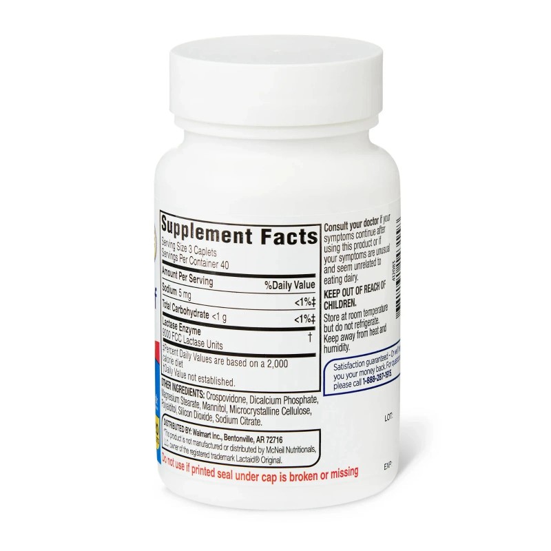 Equate Original Dairy Relief Lactase Enzyme Supplement Caplets 120-COUNT