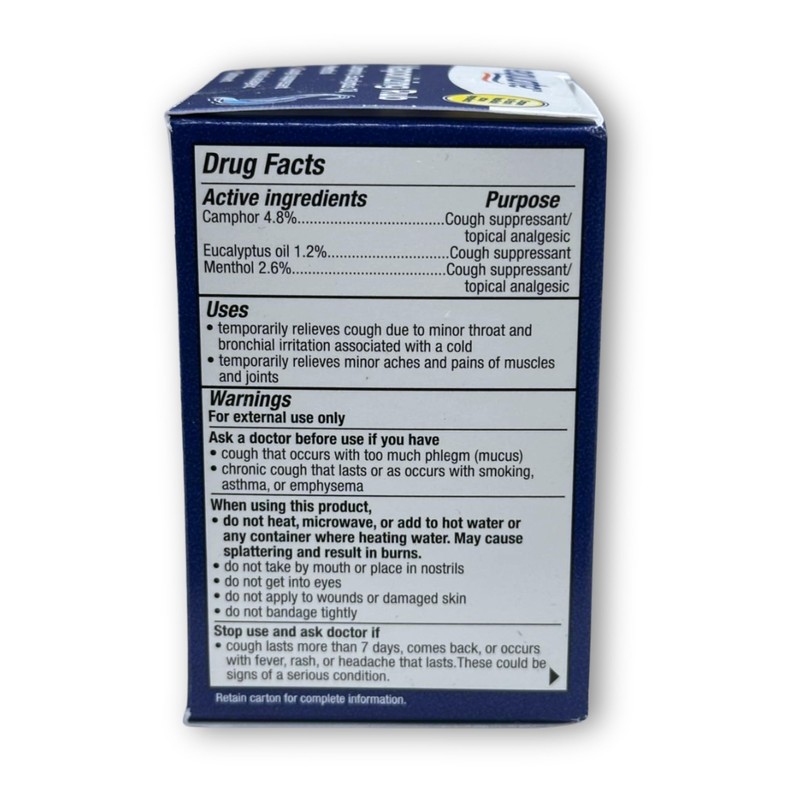 • Soothing vapor formula – Contains menthol, camphor, and eucalyptus oil