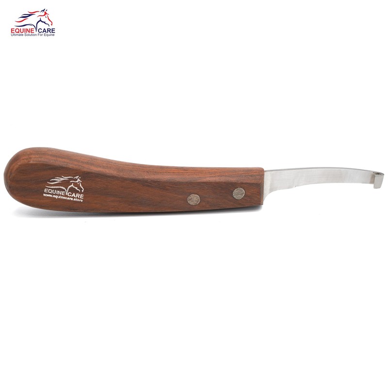 Equine Care Left-Handed Hoof Knife - Precision J2 Steel Short Blade for Goats, Sheep, and Livestock - Ergonomic Wooden Handle, Ideal for Farriers, Trimming, and Hoof Care Tools.