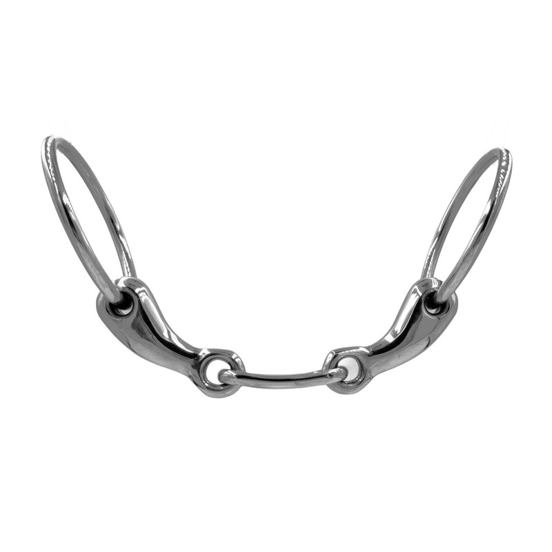 • Dr. Bristal Bit - Snaffle with anatomically shaped mouthpiece and a copper plate in the middle that applies extra pressure on the tongue during tongue movements to improve the connection to the hand.