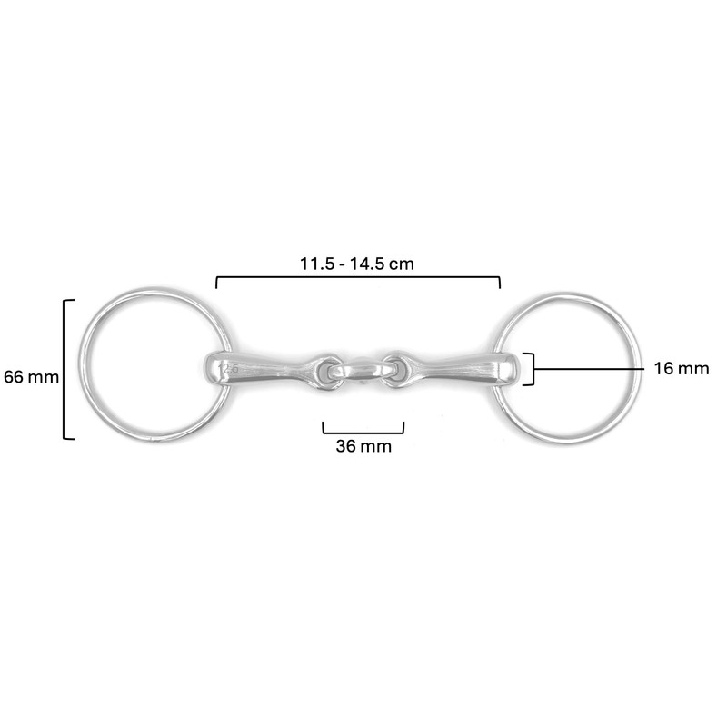 Equine Smile ES0117 Double Broken Stainless Steel Snaffle Bit Ring Diameter 65 mm Bit Thickness 16 mm (15.5 cm)