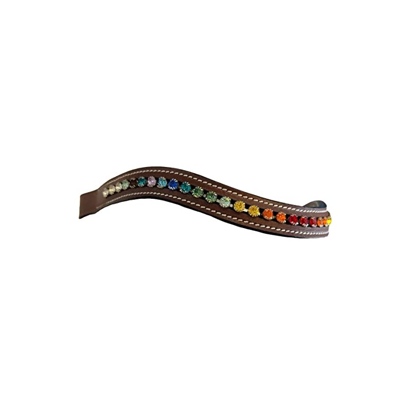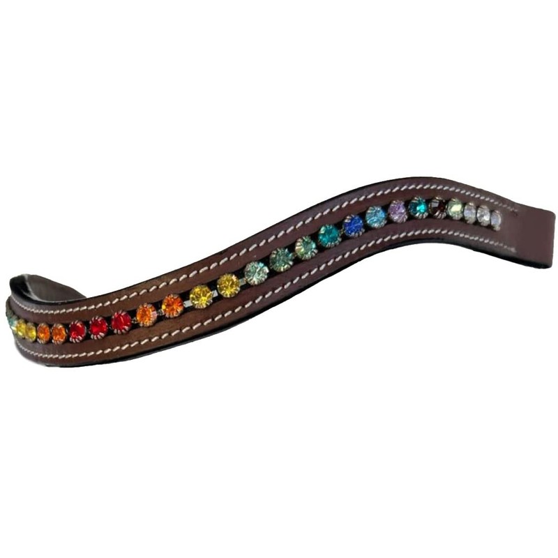 Equitem Rainbow Crystal Bling Wave Leather English Browband (Pony 14", Brown Leather)
