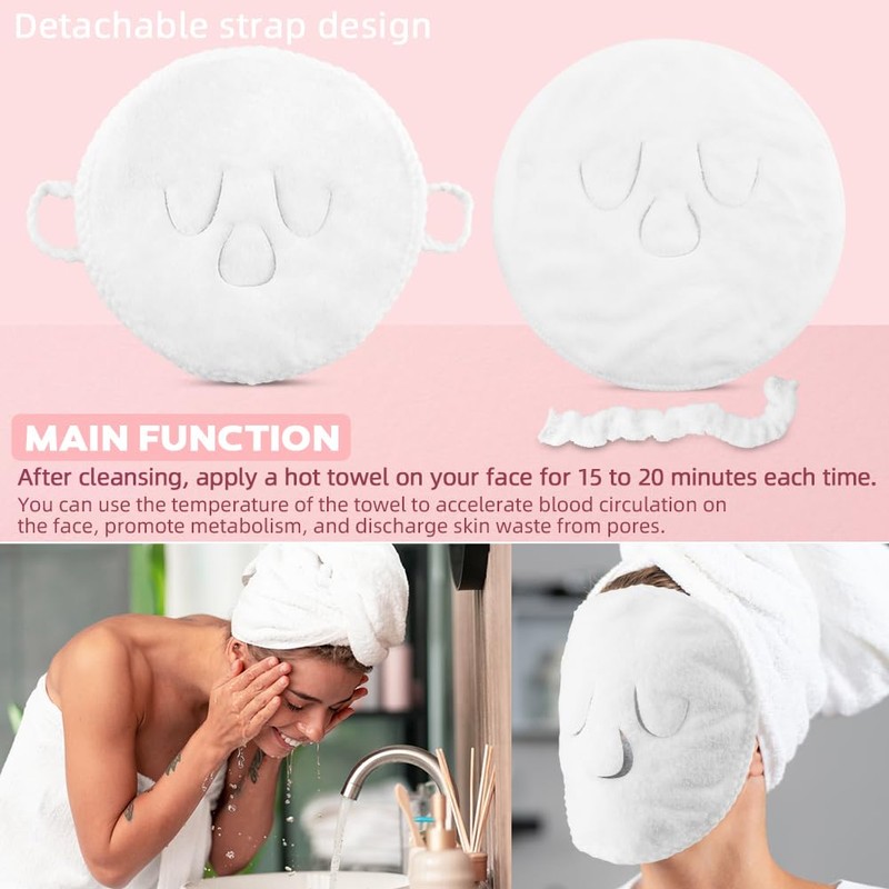 - 【PACKAGE INCLUDED】You will get 2pc x facial towel steamer with 3 holes in size of 25x25cm/9.84x9.84inch, 1pc x makeup headband in size of 21x6cm/8.27x2.36inch, suitable for daily use.