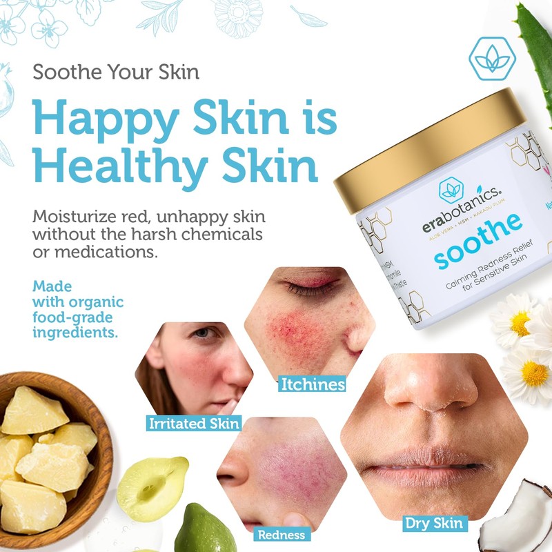 Instant Relief & Long-Term Skin Health: Don’t just mask symptoms of redness and irritation—Era Organics Soothe Rosacea Cream treats your skin with nature’s best soothing ingredients to support a lifetime of stronger, healthier, happier-looking skin.