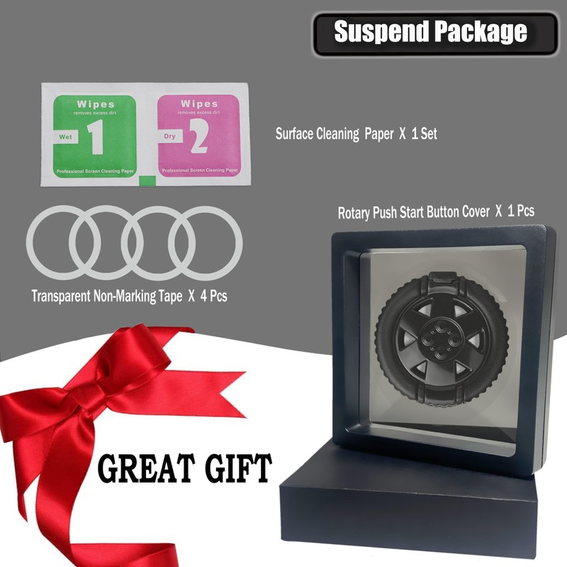 This engine starts push button cover changes the ordinary interior and add cool design to your car.Unique and different from any other.Every time starting your car,push start button cover it brings you an extra sense of ritual.It can even be used on some motorcycles.1.Timeless decoration2.Fashionable style3.Prevent accidental touch4.Exquisite appearance5.Impress passengerspackage include:1 x Spin Push Start Button Cover4 x Ring StickerSize : Inner diameter: 1.18inch ,Outer diameter : 1.96inch.Please make sure it matches your car before purchasing.A great gift for the friend, best friend or bestie in your life.That means a lot.A gift that helps you to express your love to your lovers family,Remind them to be safe always and forever. It's perfect for anytime you're thinking of them.HOW TO USEThe package is equipped with four circle tapes to install the engine button cover, which is non-destructive installation, convenient and fast.Installation steps:1. Clean the dirt near the engine start button,And paste the product with double-sided adhesive tape.2. Tear off the protective adhesive on the back of the sticker, and paste the product accurately on the outer ring of the engine start button.