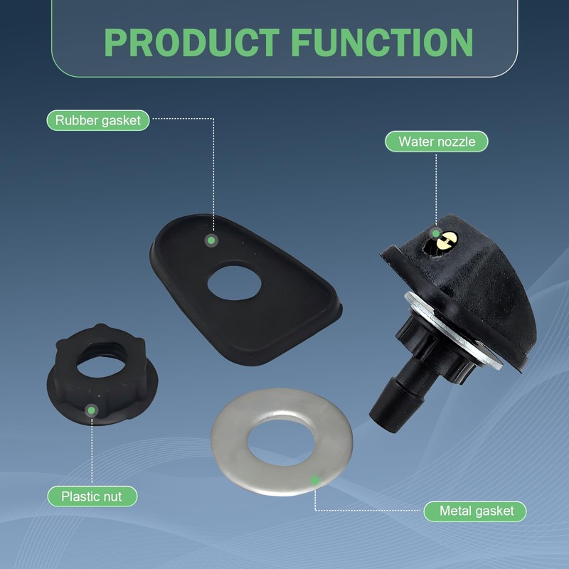 - Function: A dusty windshield can easily affect your vision. This nozzle sprayer is mainly used to clean the windshield when there is dust. It can quickly spray the windshield to help you get a clearer view, which contributes to driving safety.