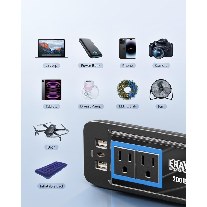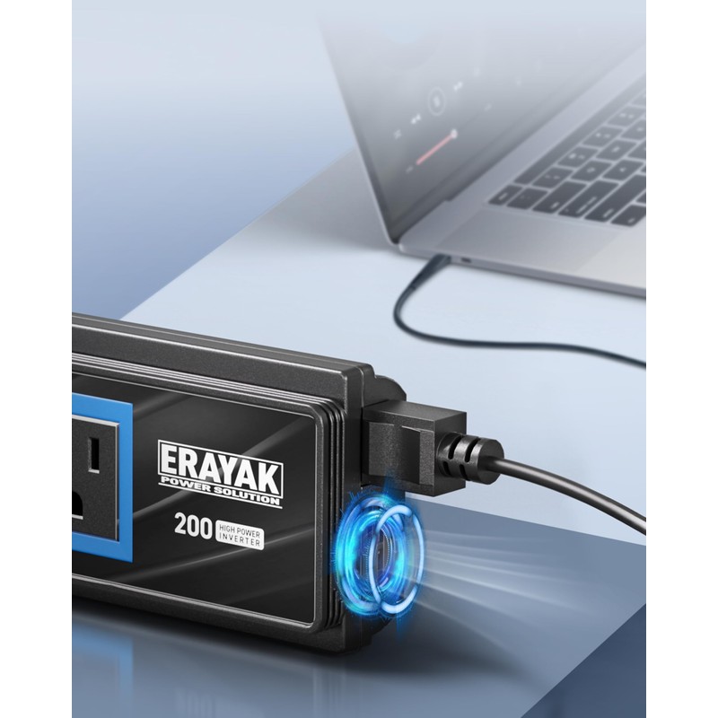 - Multi-protectionERAYAK W car power inverters safe charging technology can prevent the machine from overheating, undervoltage, overvoltage, overload, short circuit.