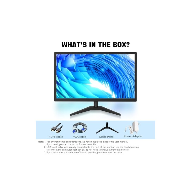 - Sharp FHD 1080P Clarity for Everyday Productivity - Designed for seamless daily use, this touch screen monitor delivers reliable 1920x1080 Full HD resolution with 250cd/m2 brightness and 1000:1 contrast ratio. Enjoy crisp text for documents, spreadsheets, and web browsing, paired with smooth visuals for video calls and casual streaming. Engineered with low blue light emission and flicker-free technology, it minimizes eye fatigue during extended office hours or weekend entertainmentideal for focused work and relaxed viewing.