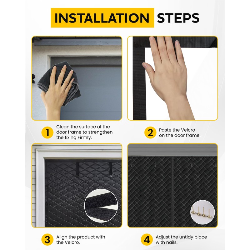 - Precision Craftsmanship: Every seam is meticulously crafted with high-strength sealing technology to rich feeling, further enhancing the insulation. The windproof and waterproof structure ensures that no external elements like wind or rain can penetrate. Magnetic garage door curtain reflects our commitment to quality, providing you with a meticulous and comfortable experience throughout use.