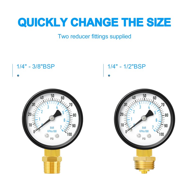 - Size: 1/4 inch BSP; 2.5 inch dial