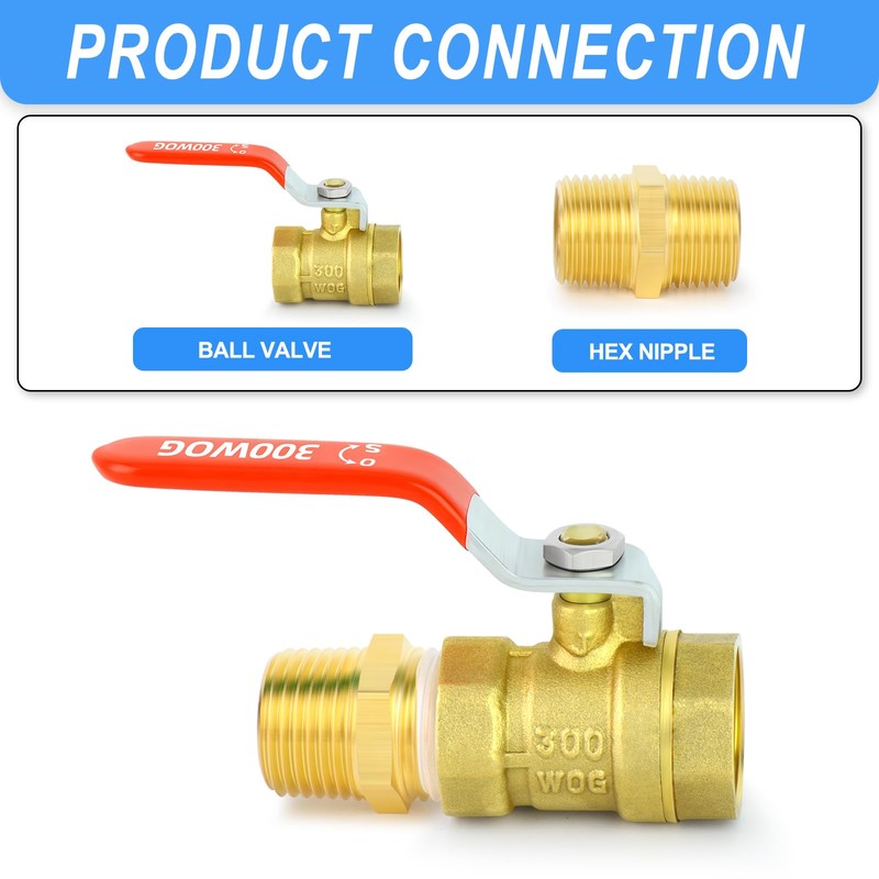 ERGAOBOY 1 x 1 inch female thread to 1 inch female thread BSP brass ball valve with brass hex nipple pipe fitting
