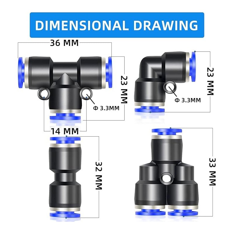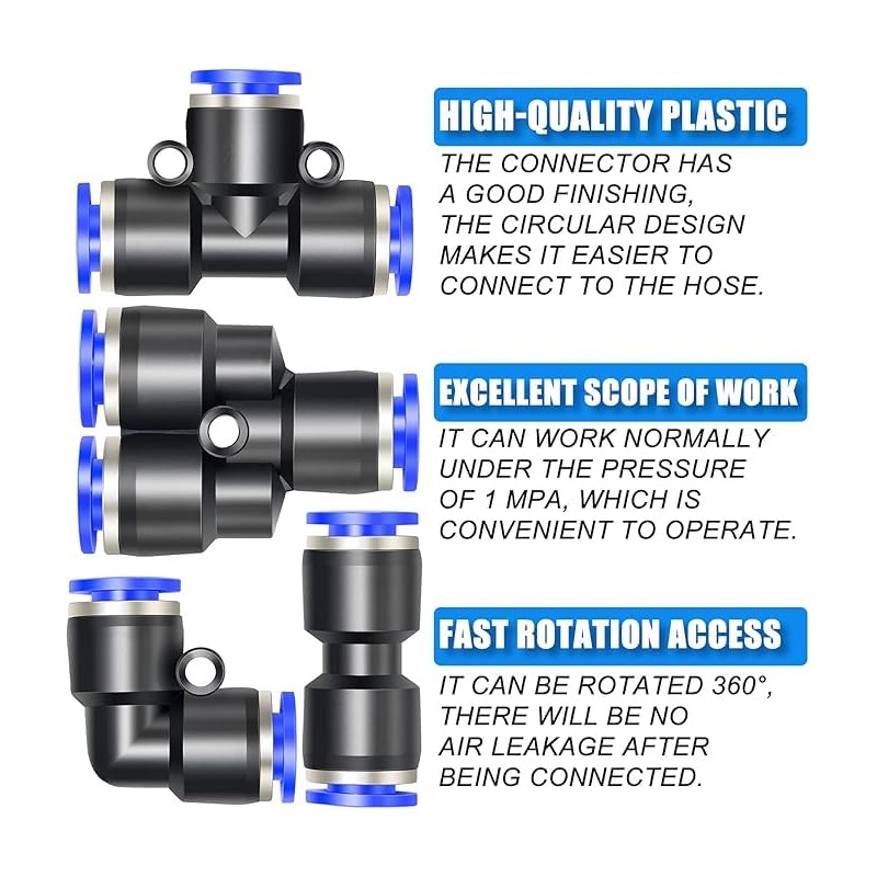 - Wide application: Used in connecting pipework and various pneumatic components.