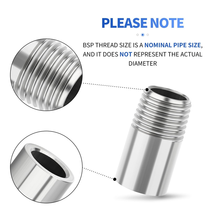 ERGAOBOY Pack of 2 304 Stainless Steel Single Wire Welding Pipe, 1/4 Inch BSP Male Thread Connect Direct Water Pipe