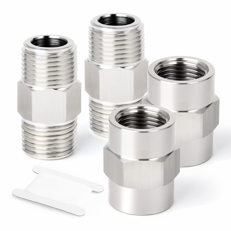 ERGAOBOY Pack of 4 1/8" x 1/8" BSP SUS 304 Forged Ear Fitting, 1/8" Male Threaded Pipe & Female Threaded Pipe
