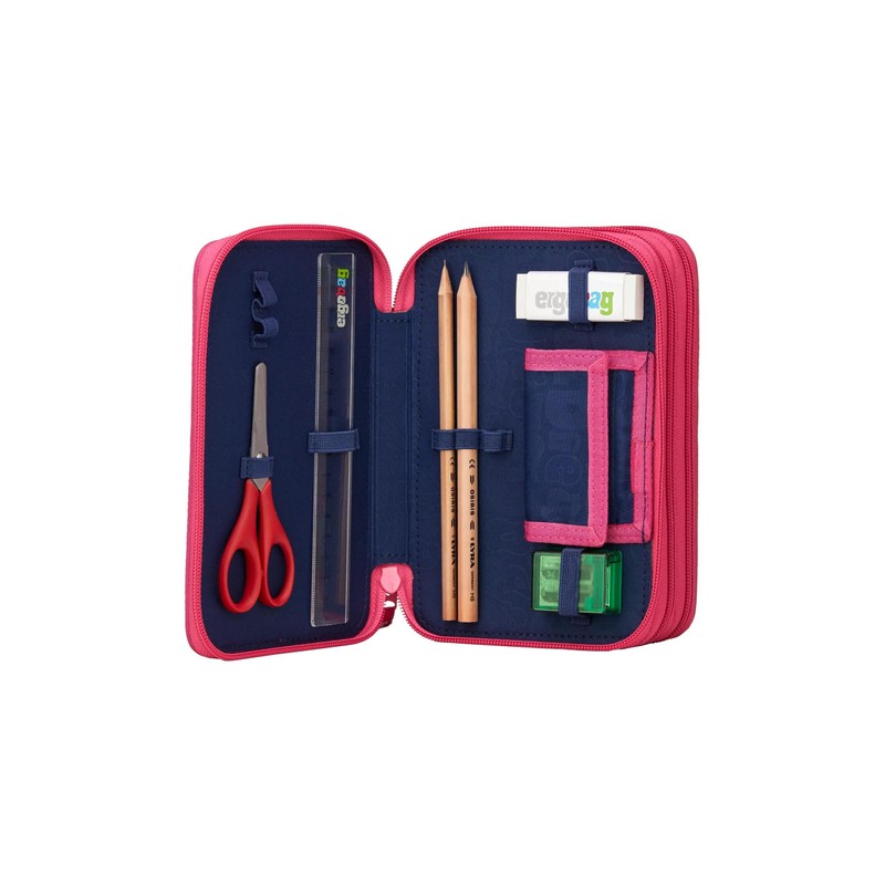 ergobag Maxi Pencil Case Set, 40 Pieces, Lyra Colouring and Felt Tip Pens, Change Compartment, Ruler, Scissors, SternzauBär - Pink