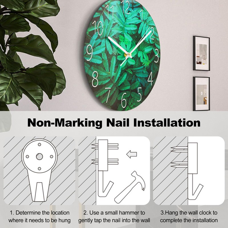 - 【Easy to Install】The clock simply hangs on the wall clock hole slot with nails, screws or hooks, and the slot is attached to the motor on the back of the wall clock. It is convenient for you to install the wall clock on an ordinary wall with little damage to the wall.