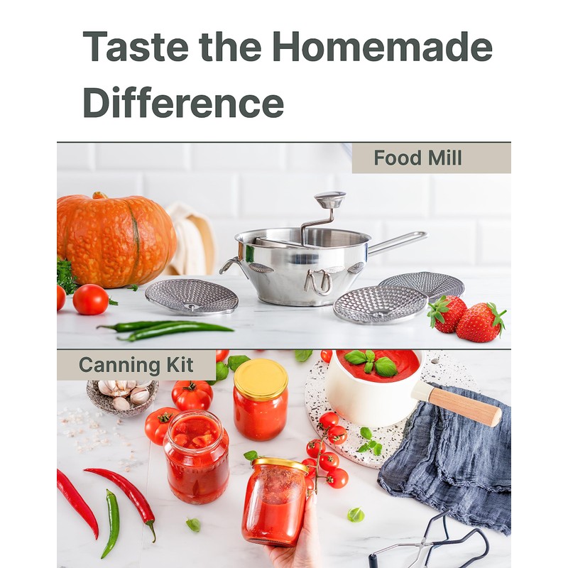 Ergonomic Food Mill Stainless Steel With 3 Grinding Discs - Rotary Food Mill for Tomato Sauce, Applesauce, Puree, Mashed Potatoes, Jams, Baby Food