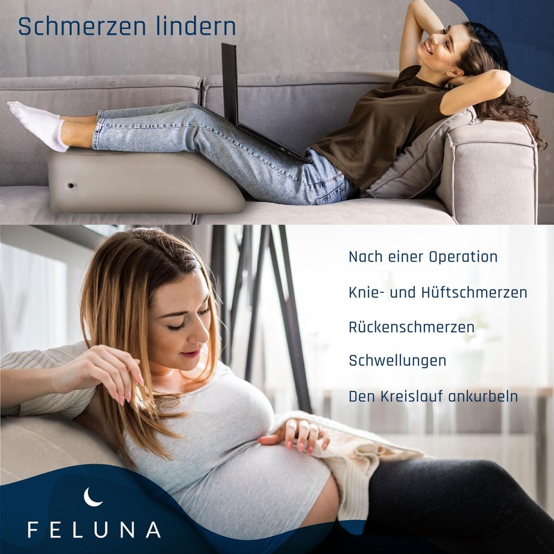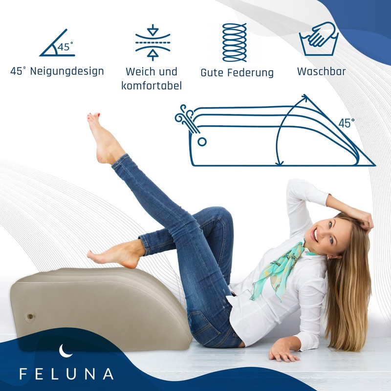 Ergonomic Wedge Pillow for Sleeping, Inflatable Orthopedic Leg Raiser to Relieve Leg and Back Pain, Leg Support Pillow for Knee, Foot and Ankle After Surgery (Beige)