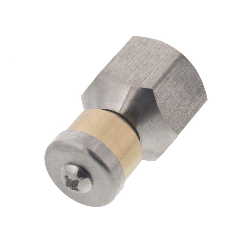 • Erie Tools 3/8-inch sewer jetter drain cleaning rotating nozzle with 6.0 orifice.