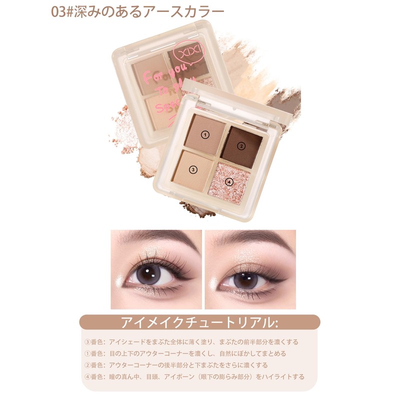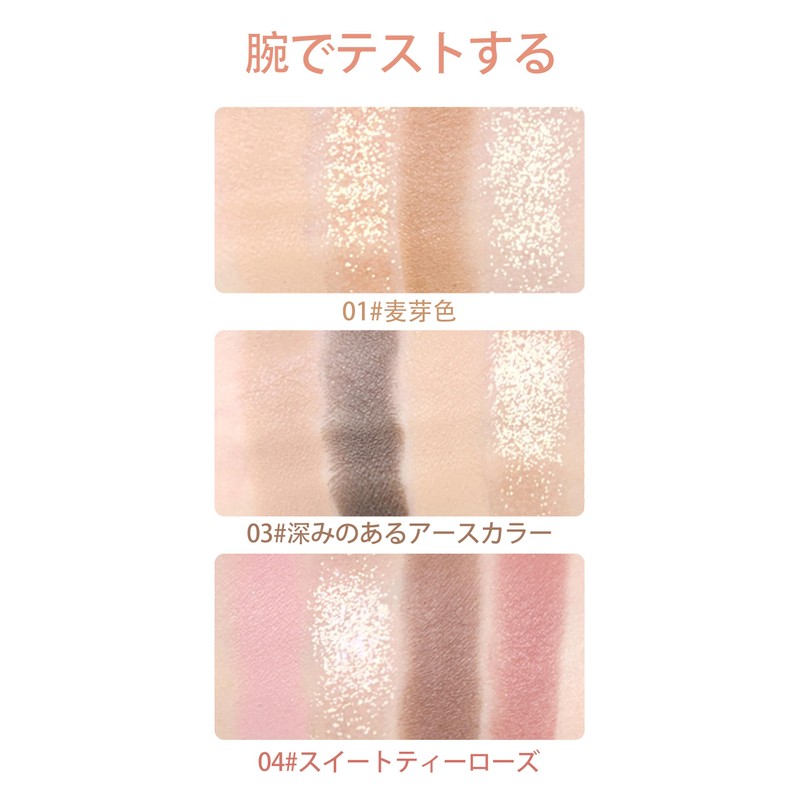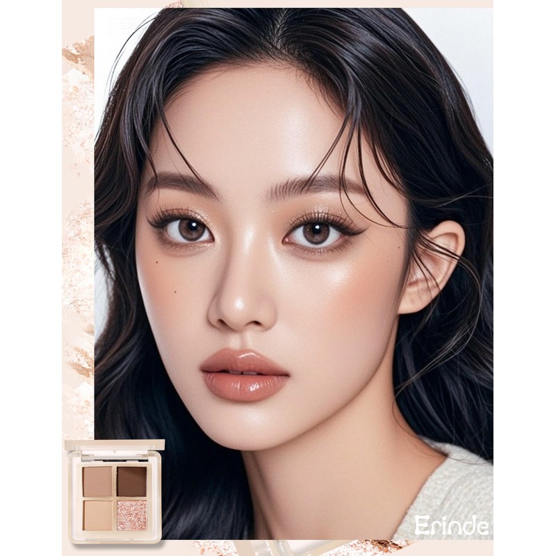 Hello! Introducing the super cute Erinde's eyeshadow palette! A magical box of eyeshadow with a combination of matte and super sparkly pearls. It is filled with popular brown and pink colors, so you can shine your eyes in any occasion, from daily makeup to party makeup. This eyeshadow palette powder is truly exquisite. With fine particles, the ultra-fine texture spreads smoothly even with a brush or fingertips. Even if you apply it over layers, it will not show unevenness, and it will come out with high colors and vivid colors. Add a sense of sparkle to your eyes, and you can instantly transform into a beautiful eye. However, the strength of this eyeshadow palette is of course sustainability! Excellent waterproofing and sweat resistance, so it can withstand sweat and oil. It will not fall off from morning to night and will not fade and will keep your eyes looking clean even when you are wearing a mask or hot day. You will always be able to stay bright and confident! Another great feature is the compact mini size. It is super convenient to carry, and can be easily restored when you are on the go. This eyeshadow palette is popular with the net, making your eye makeup more cute and sparkling. Get yours today and enjoy your everyday eyes with this product.