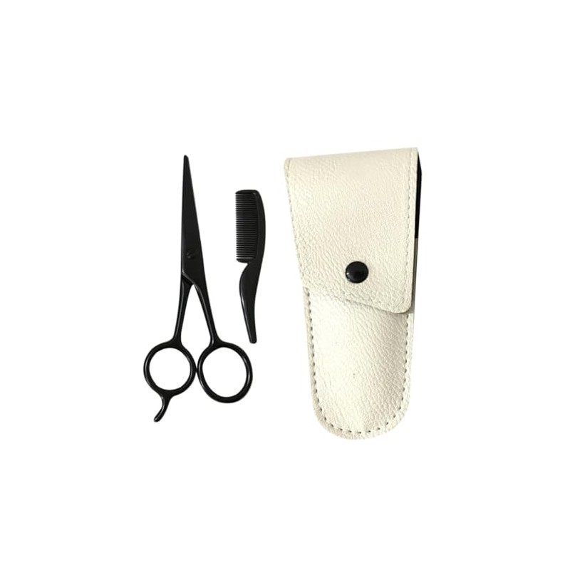 ERINGOGO 3Pcs Beard Scissors Set Precision Stainless Steel Trimming Tools for Beard Care Includes Black Scissors Apricot Leather and Small Comb for Home