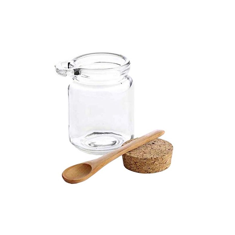 erioctry 1pcs 250ml/8 oz Glass Jar Reusable Empty Clear Glass Storage Container Bottle with Cork Stopper and Wooden Spoon for Storing Spice Salt Sauce Honey Nuts