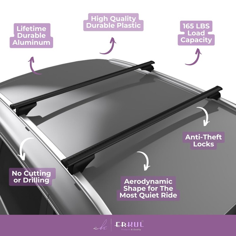 ERKUL Roof Rack Cross Bars for Ford Escape 2020-2025 | Aluminum Crossbars with Anti Theft Lock for Rooftop | Compatible with Flush Rails - Black
