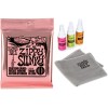 .007-.036 Custom Gauge Electric Guitar Strings, Nickel Wound, Zippy Slinky; 3-part Instrument Cleaning and Maintenance Kit with String Cleaner, Instrument Polish, Fretboard Conditioner, and Microfiber Cloth