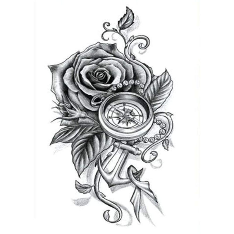 - Tattoo motif rose compass anchor for upper arm, forearm, hand, neck, thigh, lower leg, calves, legs, cleavage, hips, back, stomach and the whole body