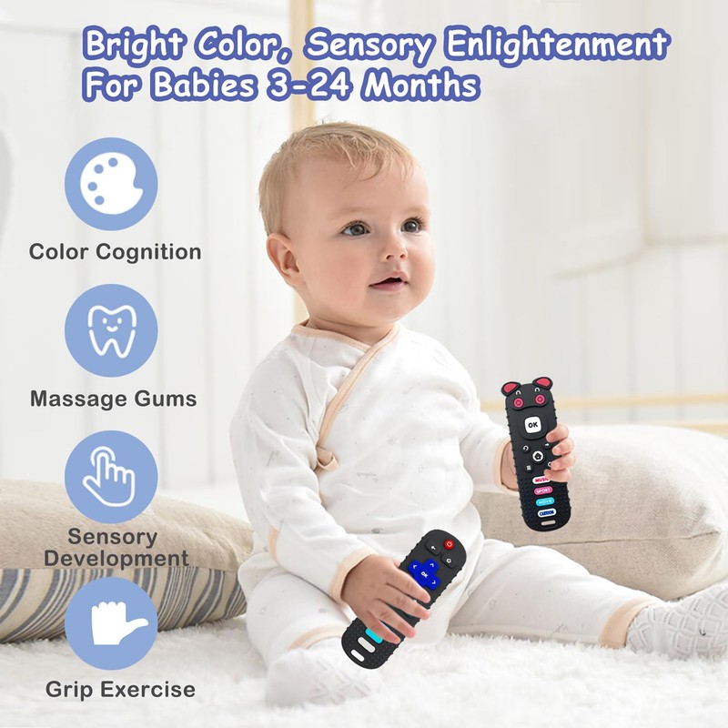- PERFECT SIZE- It's soft and flexible enough so won't hurt baby's tender gum while the baby use this teething toy. The best teether size for baby, it's perfectly small so it's not oversized. These are simply adorable. They look so similar to a remote that I'm sure any baby that plays with the remote will be happy with these teethers instead. There are many bumps, nubs and ridges for your little one to gum away at.