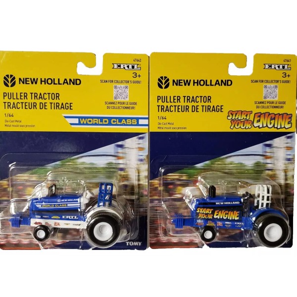 - 1/64 SCALE ERTL PULLERS NEW HOLLAND START YOUR ENGINE & WORLD CLASS PULLING TRACTORS